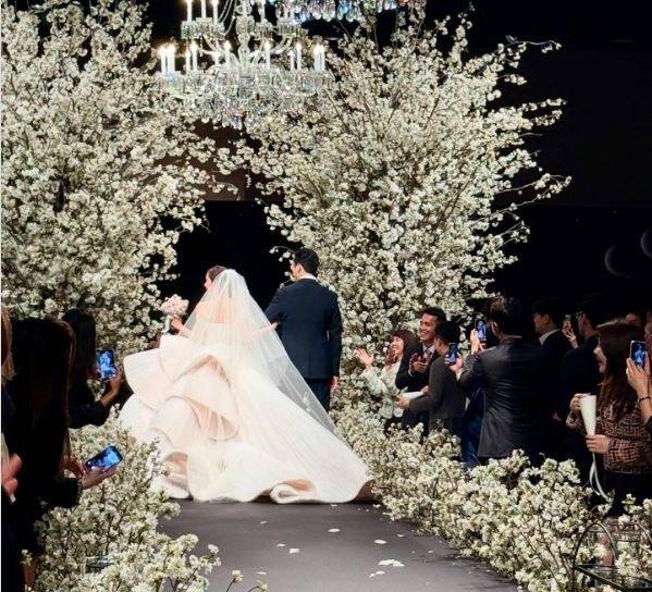 효민의 웨딩 드레스는 2025 S/S 사라므라드 하이엔드 웨딩드레스 컬렉션으로 국내에 단 2벌뿐인 것으로 알려졌다.
