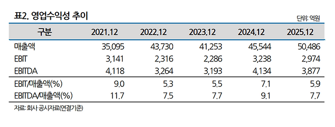 2025년에는 다양한 제약 요인에도 불구하고 5.9%의 영업수익성을 기록했다. 신동부문 고마진 제품의 판매 부진을 비롯해 통상임금 소급적용, 장기종업원 부채 평가손실 등 일회성 비용과 미국 스포츠탄 관세 부담에 따른 수요 위축에도 호실적을 냈다.