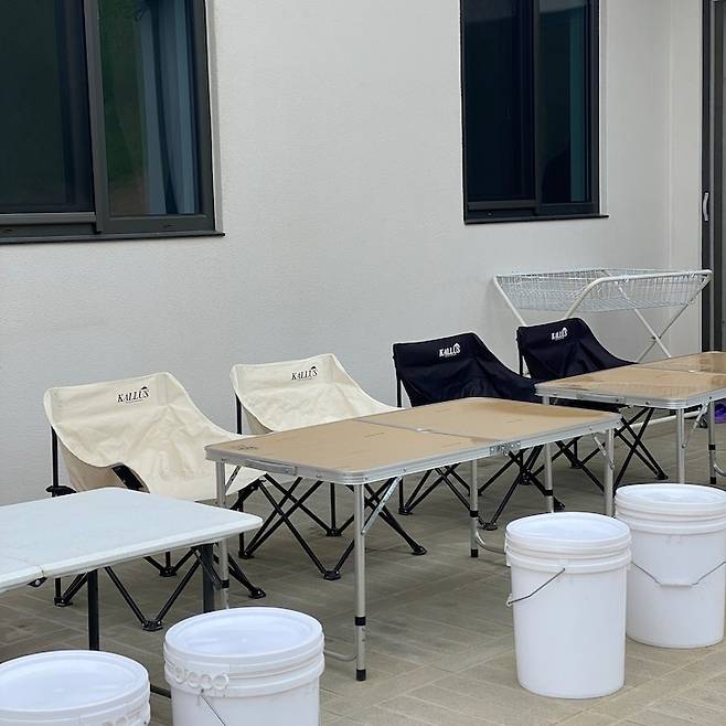 손님들이 오시면 이렇게 상을 펴놓고 바베큐 파티를 하기도 합니다.