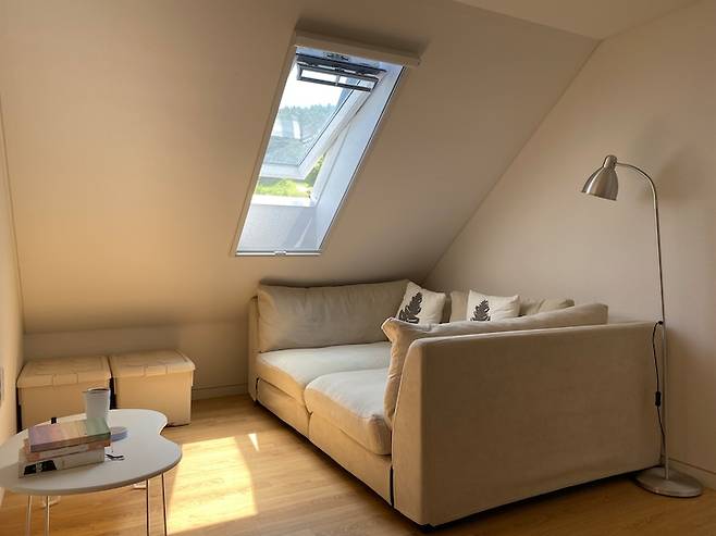 첫 번째 방은 주로 휴식을 취하거나 책을 읽는 공간이에요. 겨울 옷을 보관하는 리빙 박스도 있습니다.
