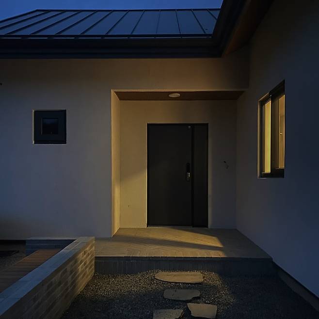 돌길을 따라 집 왼편으로 들어오시면 집 뒤로 숨어있는 현관을 만나실 수 있는데요.