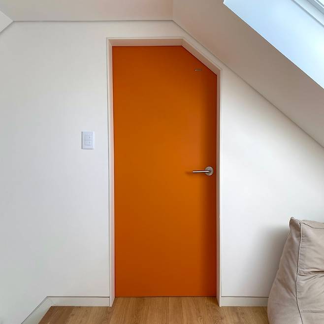 오렌지색 문으로 1층과는 또 다른 느낌의 문이에요.