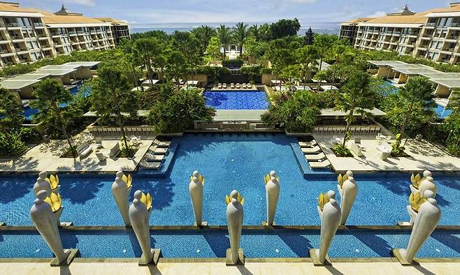 한예슬이 방문한 발리 리조트는 '더 물리아 (The Mulia)'입니다. 이곳은 누사두아 지역에 있는 대표적인 리조트로 손꼽힙니다. 특히 허니무너들에게 인기 있는 장소로 뛰어난 시설과 럭셔리한 분위기가 한몫하는 곳인데요. 더 물리아는 축구장 40여 개를 이어 놓은 대규모 리조트로 다양한 시설을 갖추고 있죠.