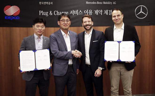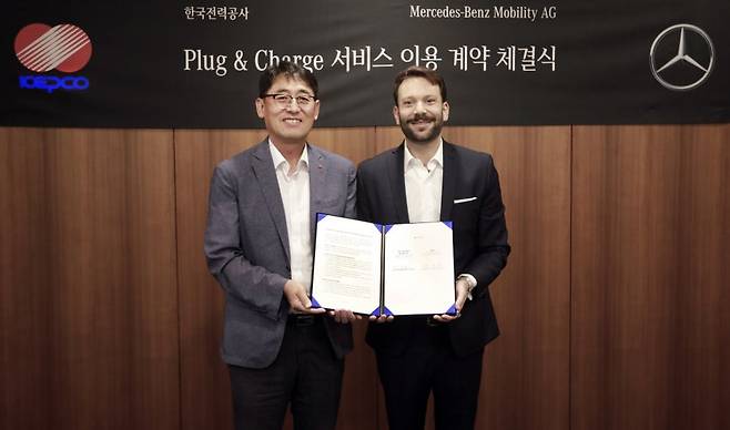 메르세데스-벤츠 코리아는 전기차 고객의 간편 충전 서비스 경험을 위해 한국전력공사(이하 한전)와 ‘메르세데스-벤츠 모빌리티 AG’가 ‘플러그 앤 차지(Plug & Charge, 이하 PnC)’ 계약을 체결한다고 8일 밝혔다.