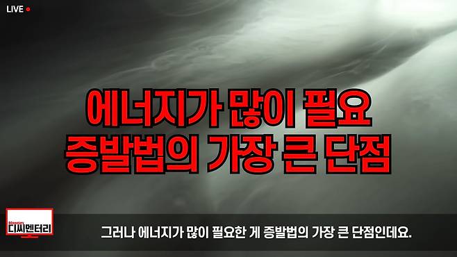 그러나 에너지가 많이 필요한 게 증발법의 가장 큰 단점인데요. 바닷물이 수증기가 될 정도로 끓이려면 열이 많이 필요한데, 여기에 들어가는 에너지 소모가 상당히 큽니다. 경제성을 따져볼 때 비싼 석유, 석탄 등으로 직접 바닷물을 끓이는 건 엄두도 내지 못하기 때문에 주로 발전소 냉각수의 폐열을 이용하죠. 발전 과정에서 쓰인 냉각수는 버려질 때 높은 열을 갖고 있어, 이 열을 버리지 않고 다시 바닷물을 데우는 데 써 에너지 비용을 아끼는 겁니다. 그럼에도 필요한 에너지의 절대량 자체가 워낙 크기 때문에 석유는 싸고 담수는 귀한 중동 지역에서 주로 씁니다.