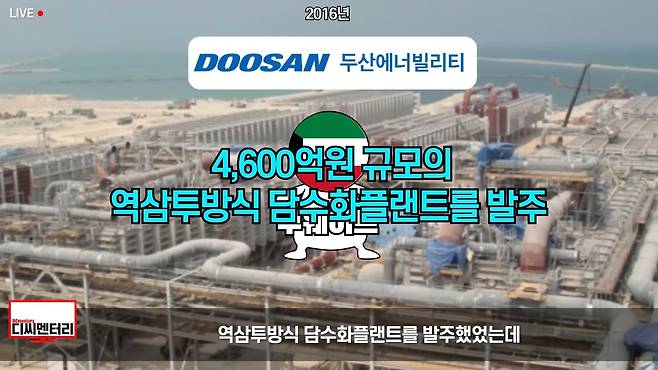2016년 쿠웨이트 정부는 두산에너빌리티에게 4,600억 원 규모의 역삼투방식 담수화 플랜트를 발주했었는데, 하루 생산량 27만 톤으로 90만 명이 동시에 사용할 수 있는 양에 해당합니다.
