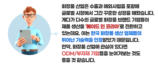 이 중 ODM 업체와 부자재 업체는 높은 기술력과 R&D가 요구됩니다.