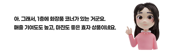 두 번째 이유는 마진입니다. 백화점은 땅값이 비싼 도심지에 지어지기 때문에 마진이 높은 상품을 팔아야 하는데, 대표적인 상품 카테고리가 화장품과 패션/의류입니다.
