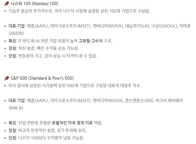 미국 시장에 투자 종목으로는 S&P500과 나스닥100 같은 대표 지수 ETF가 기본으로 거론됩니다. 조금 더 공격적으로 접근한다면 TIGER 미국TOP10 ETF나 Kodex 미국빅테크TOP10 ETF처럼 상위 빅테크 기업에 집중하는 ETF도 선택지가 될 수 있습니다. 이들 상품은 연평균 기대수익률이 12~20%로 높은 편이지만 변동성도 크기 때문에 최소 5년 이상 장기 보유한다는 전제가 필요합니다. 단기적인 주가 하락은 불안 요인이 아니라 오히려 매수 기회로 삼을 수 있다는 점도 강조됩니다.