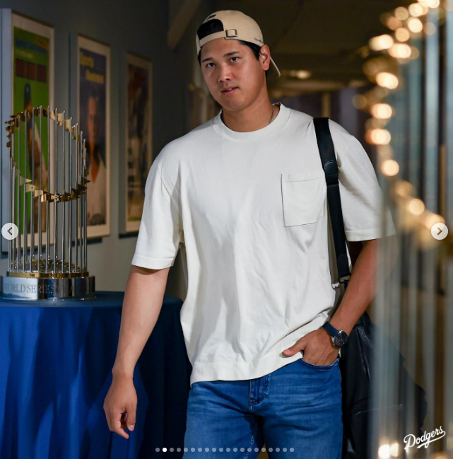 연습복 차림이다. 그는 선수다. 바로 오타니 쇼헤이(31)다. 방금 전 타격 훈련을 끝냈다. 그리고 뒷정리하는 장면이다.