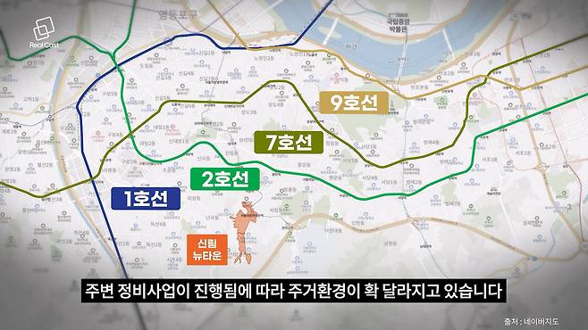 이처런 신림뉴타운은 서울지하철 1, 2, 7, 9호선과 연결되는 교통망과 함께 주변 정비사업이 진행됨에 따라 주거환경이 확 달라지고 있습니다.