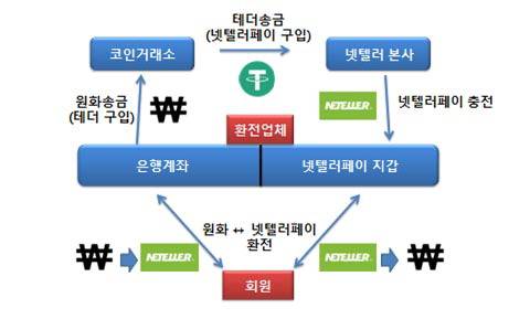 이러한 수법으로 불법 환전업체들이 매매한 외국환은 9434억 원에 달한다. 한 업체는 해외 FX도박(환율 예측 도박) 사이트와 업무협약을 맺었다. 회원이 도박 사이트 충전을 요청하면 업체가 가진 테더로 충전금을 지급하고, 회원에게는 환전한 넷텔러페이를 쓴 것처럼 꾸며 도박을 지원했다.