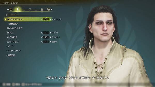 캐릭터 생성은 정식 버전에서의 기능을 전부 체험할 수 있다. 영상에서는 몬스터 헌터 월드보다 한층 다양하고 세련된 커스터마이징 외형이 눈길을 사로잡았다.
