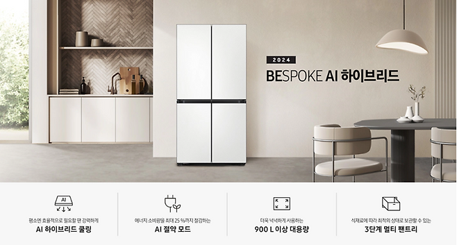 삼성전자의 2024년형 비스포크 냉장고는 전 모델에 'AI 인버터 컴프레서'와 ‘AI 절약 모드’ 등 에너지 절감 기술을 탑재했다.