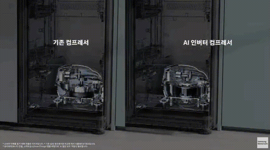 컴프레서는 '냉장고의 심장' 역할을 하는 부품으로, 이번에 적용한 AI 인버터 컴프레서는 냉장고의 미세한 온도 변화에 스스로 반응해, 냉장고의 냉기를 순환시킨다. 냉장고 주변온도, 작동모드, 문을 열고 닫음에 따른 온도 변화에 맞춰 알아서 모터 속도를 조절하는 방식으로, 이를 통해 최적의 냉기를 만들어 에너지 소비를 줄여준다.