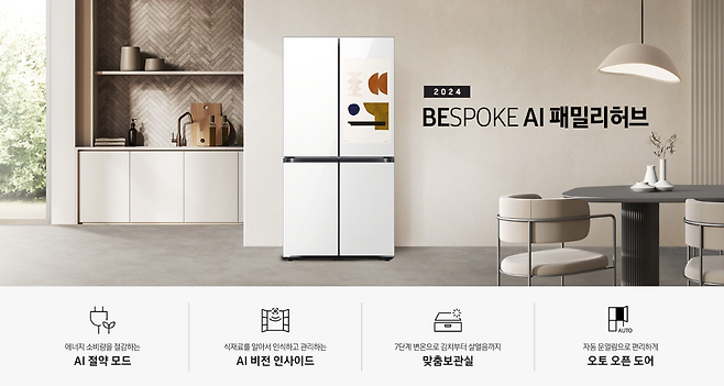 삼성전자의 2024년형 비스포크 냉장고는 전 모델에 'AI 인버터 컴프레서'와 ‘AI 절약 모드’ 등 에너지 절감 기술을 탑재했다.