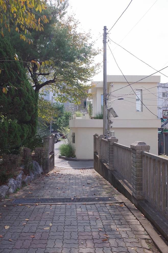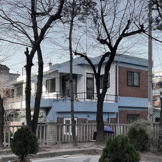 집 앞에는 아파트 단지가 있었고, 코너에 위치하여 충분한 시야가 개방되어 있었습니다. 지하 1층, 지상1, 2층으로 연면적은 약 37평 정도 되었는데, 특이한 점은 건물의 많은 면적들이 서울의 협소 주택에서는 보기 힘든 '외부 테라스'로 되어 있다는 점이였어요.