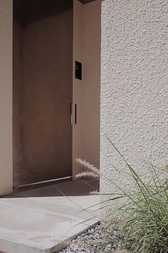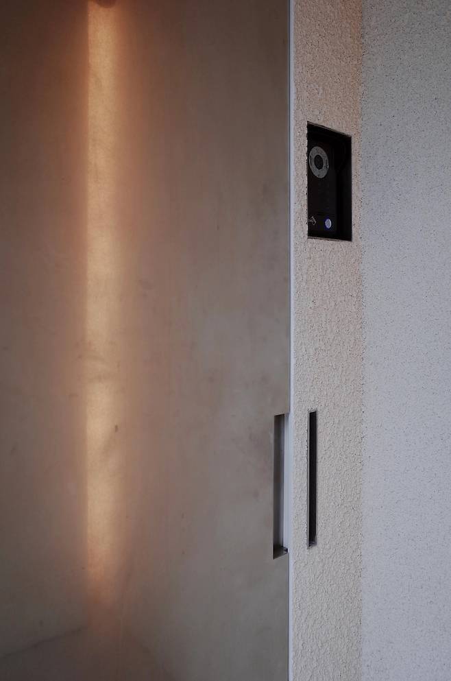 대문 손잡이는 대문 위에 부착되는 형태가 아닌 손을 집어넣는 형식의 파내는 디자인으로 설계하였고 극단적으로 어디까지 숨겼냐면 열쇠 구멍조차 만들지 않았어요.