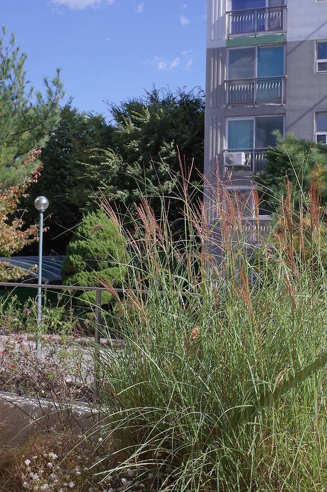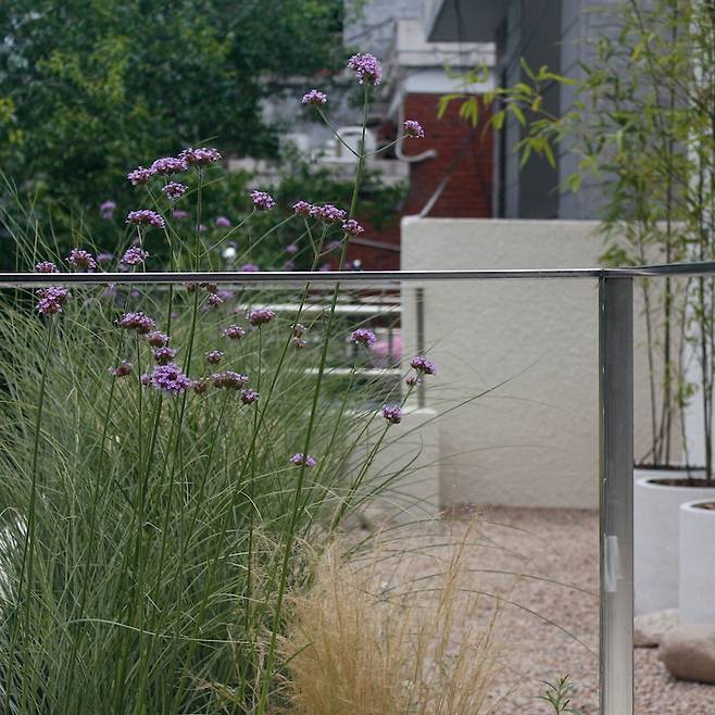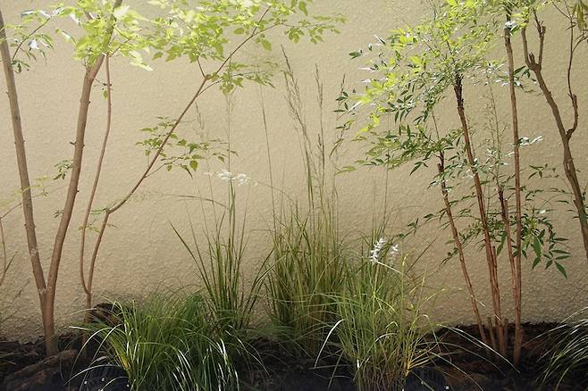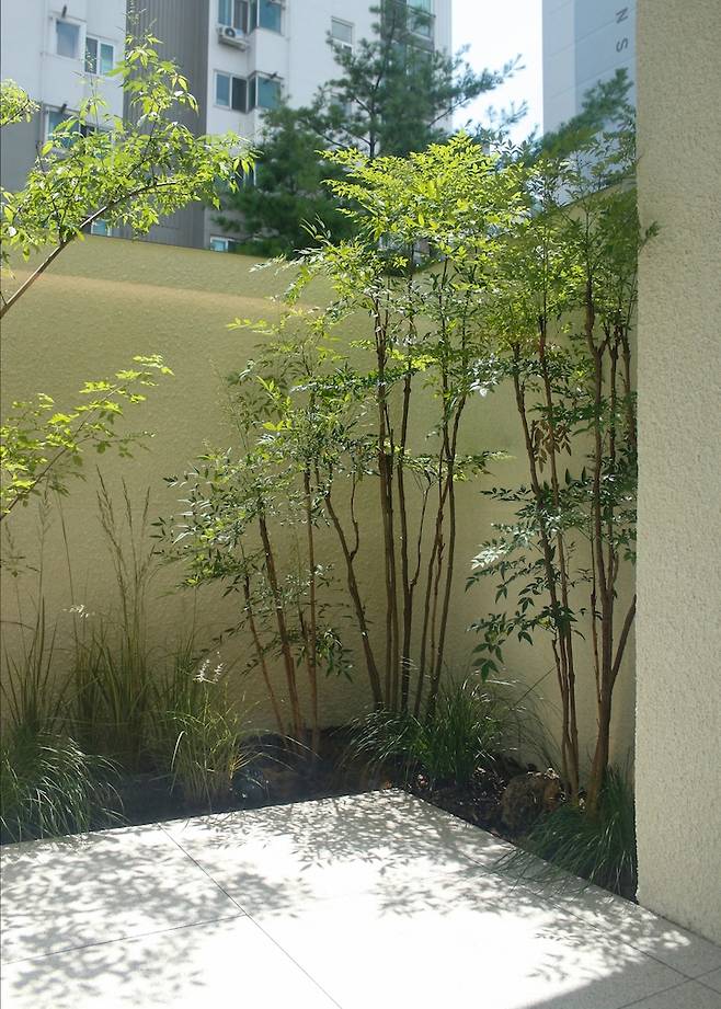 수형이 고운 바이텍스 나무와 남천, 다양한 높낮이의 그라스류를 심어주었죠.