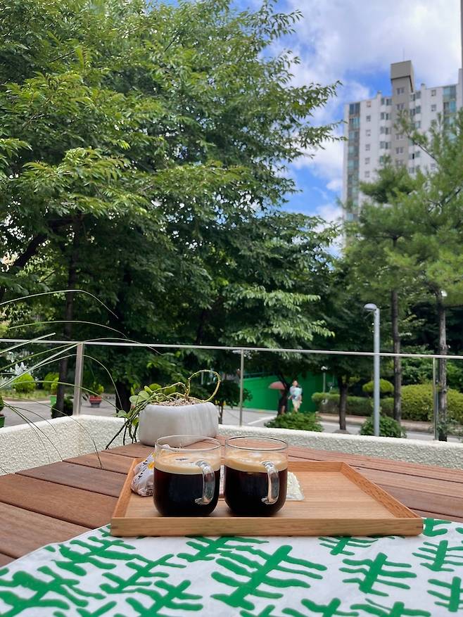 날이 좋을 땐 이렇게 데크에 앉아 커피를 즐기기도 하구요.