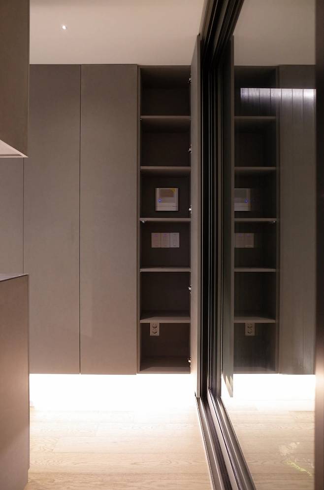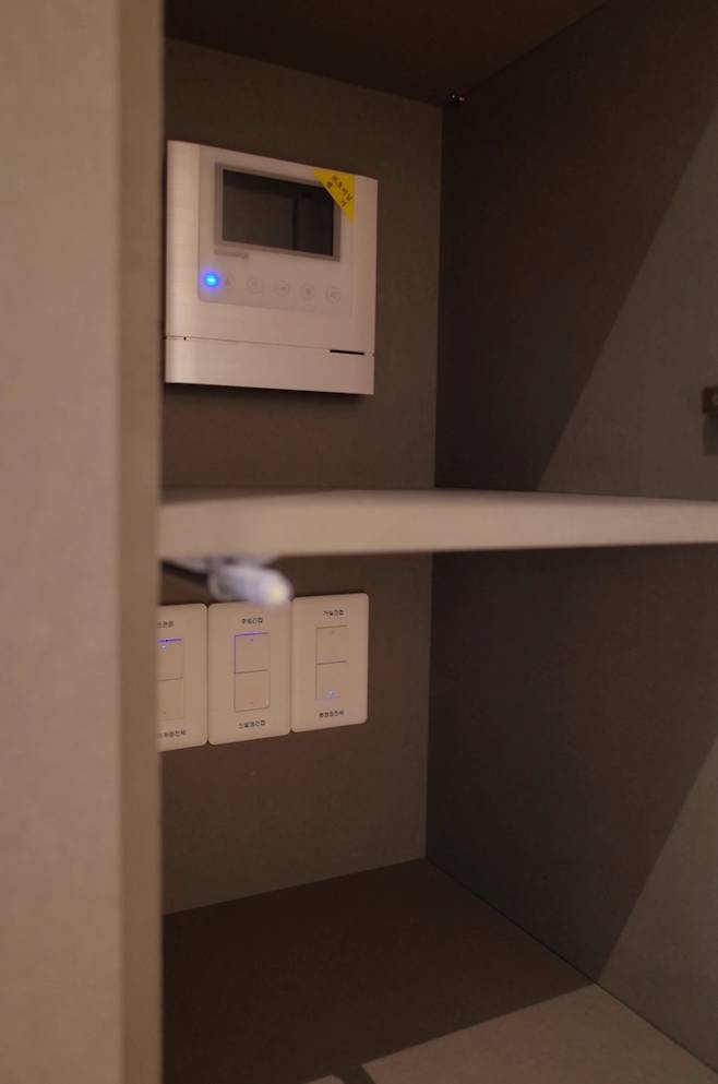 그리고 수많은 조명 스위치들과 인터폰은 안에 숨겨주었어요. 저희 집 조명의 대부분은 스마트 제어로 제어할 수 있게 계획 되었기 때문에 수납장 안에 있는 것은 큰 문제가 되지 않는 답니다.