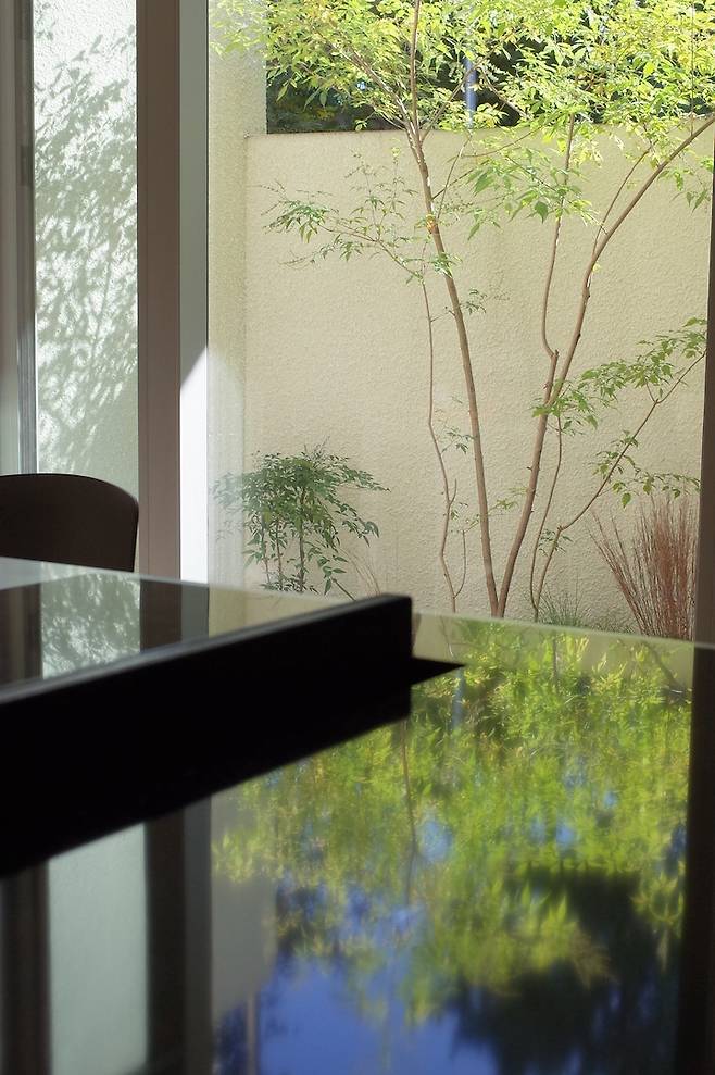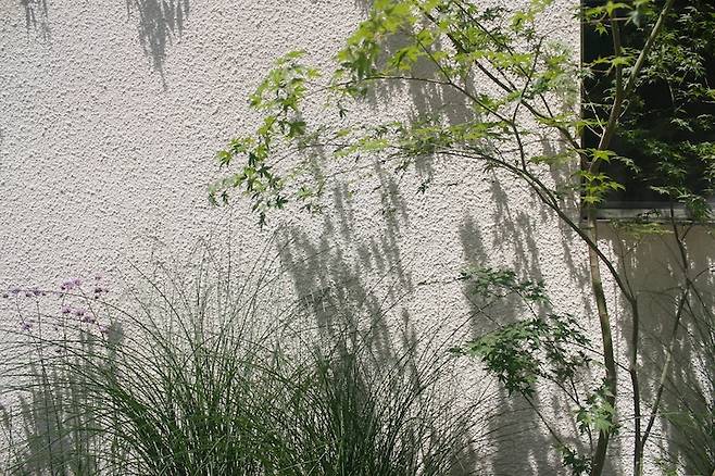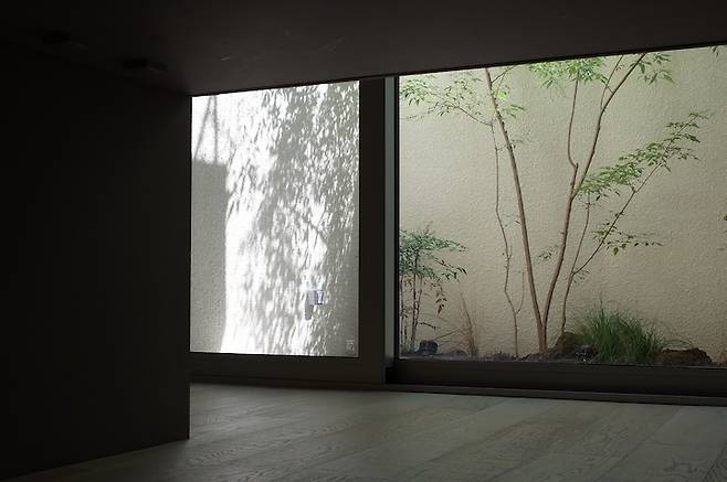 창은 액자처럼 정원의 풍경을 담아내고 식재들이 빛과 어우러져 벽과 바닥 위로 쏟아내는 그림자는 찰나의 아름다움을 그려냅니다.