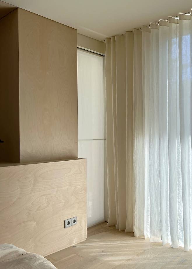 자연스러우면서도 본연의 밝고 부드러운 느낌을 해치고 싶지 않아 자작나무에는 별도의 바니쉬 작업을 하지 않았어요. 있는 그대로의 색감과 무늬는 빛이 드나듦에 따라 공간을 변화시키고 깊이를 더해줍니다.