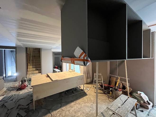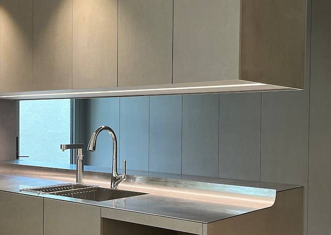 소재 같은 경우에는 스테인리스 상판과 무광의 느낌을 원했는데, 현장 제작이기 때문에 추가로 표면 가공을 하기에는 한계가 있었고 비용도 너무 많이 올라가게 되어 공사 직전까지 고민이 많았어요.