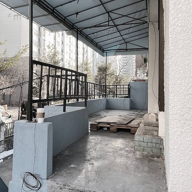 복잡한 형태의 난간은 테라스의 개방감을 감소시키고 있었기 때문에 이 부분도 대대적인 변화가 필요했어요.