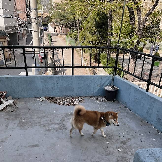 식물에 물을 주는 동안 죠죠가 바깥구경을 하면서 쉬기도 하구요. 가끔 생각지도 못한 귀여운 손님들이 찾아오기도 해요ㅎㅎ