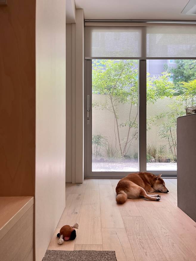 또 예민한 까탈레나 강아지 죠죠를 위한, 강아지가 편안해지는 그런 집 말이에요. 느긋하고 한적한 교외 생활이 끌리기도 했지만, 저희의 활동 반경이나 생활 패턴까지 바꾸고 싶지는 않았어요. 아직은 조금 더 서울 생활이 걸맞을 것 같았습니다. (사실 죠죠가 도시를 좋아해요...)