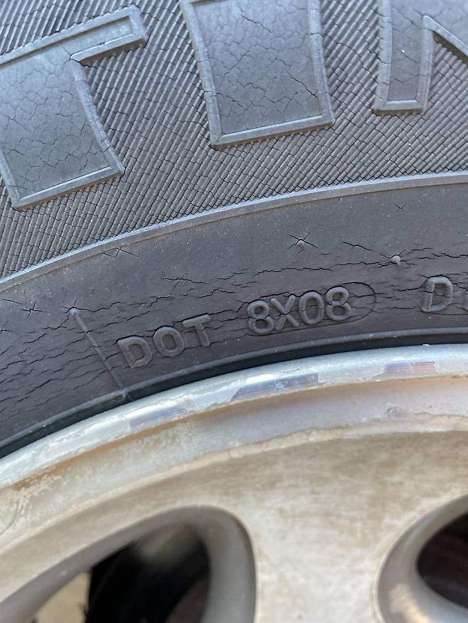타이어는 시간이 지나면서 고무가 딱딱해지거나 균열이 발생하는 노화 현상이 생기므로, 제조 연도 확인은 필수다. 타이어 측면의 DOT 코드로 생산 연도를 알 수 있는데, 네 자리 숫자가 주차와 연도를 의미한다. 일반적으로 5년 이상 지난 타이어는 안전상 교체가 권장된다. 오래된 타이어를 구매하면 마모가 적어도 안전과 성능 측면에서 위험할 수 있어 주의가 필요하다.