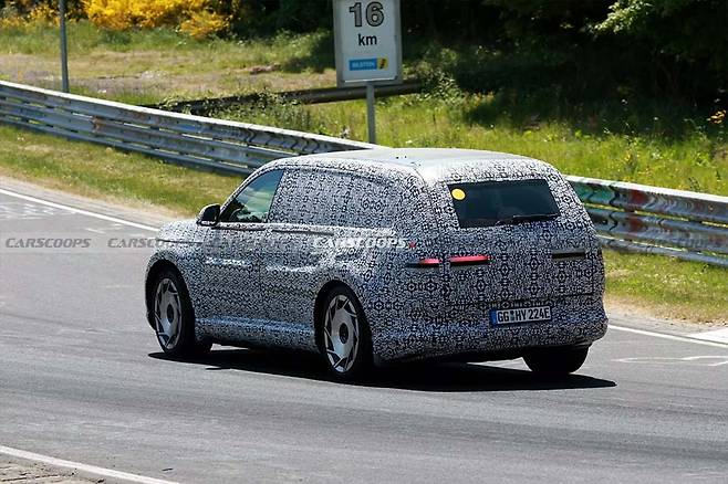 20일 카스쿱스가 포착한 스파이샷에 따르면 GV90은 위장막 대신 위장 필름을 씌우고 한계 주행 테스트에 나섰다. 스파이샷을 통해 엿볼 수 있는 GV90의 모습은 고속 주행을 위해 지상고를 낮춰 SUV보다 미니밴에 가까운 형태다. GV90에는 지상고와 감쇄력 조절이 가능한 에어 서스펜션이 탑재될 것으로 알려졌다.