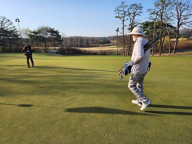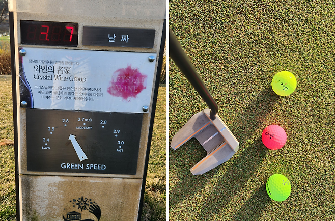 7시 반쯤 티업 시간에 아직 그린이 약간 얼어있었습니다. 덕분에 2.6미터 속도는 안 나오고 23~2.4로 더 느렸습니다. 물론, 후반에 날씨가 풀리니 속도가 약간 다시 빨라지네요.