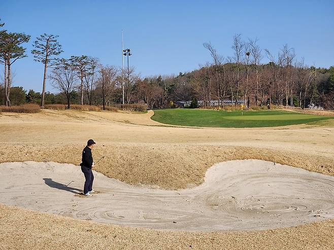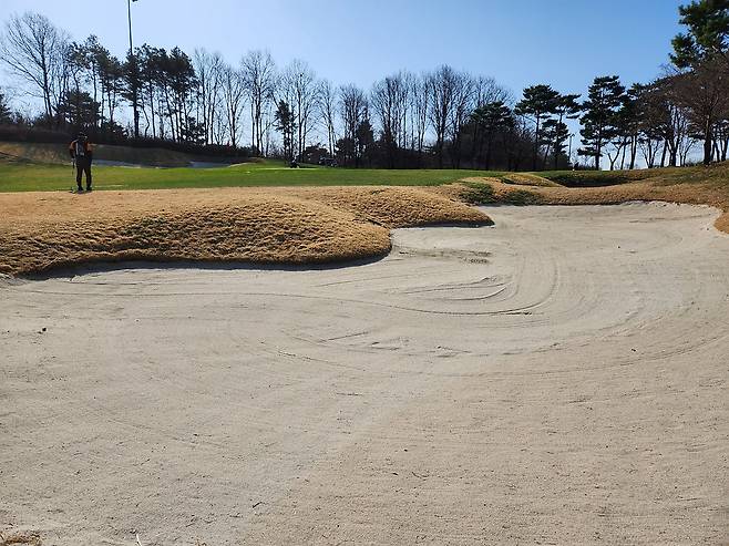 벙커 관리는 상당히 잘 되어있었습니다. 모래 양도 많았고 사진처럼 약간 젖어있는듯해서 무거운 모래일 거라 생각했는데 매우 곱고 부드러워서 약간 놀랬습니다. 또한, 벙커 주변에 풀 관리도 깔끔하게 잘 되었습니다.