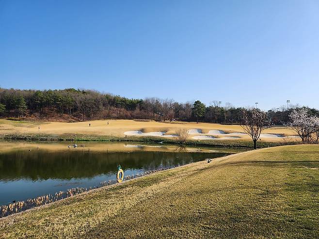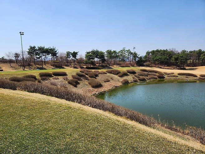 나무가 많다기보다는 탁 트인 골프장에 더 가깝습니다. 골프장 사이트에도 보니 산악지형의 코스보다는 고저차가 낮은 구릉지와 평원에 조성되었다고 나오네요. 해저드 처리되는 홀이 많지만 해저드 티를 사용할 수 있어서 힘 있게 멀리 치는 골퍼에게 유리합니다.