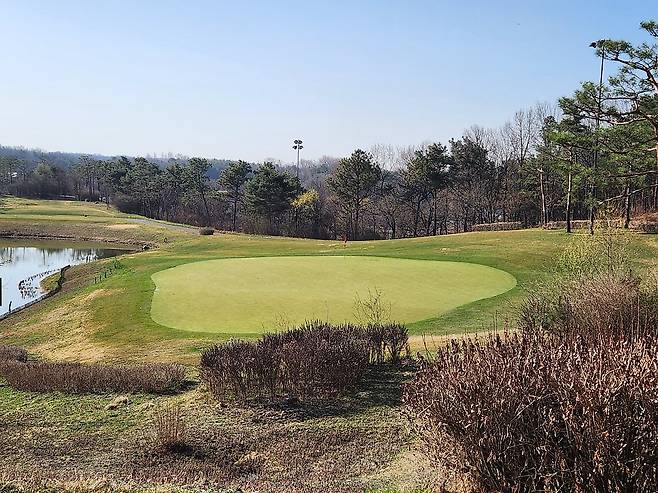 그린은 중 사이즈에 크나큰 언듈레이션 없이 잔잔한 편입니다. 그린 주변은 양잔디 러프로 꾸며놓아서 짧은 어프로치샷을 잘 잡습니다.