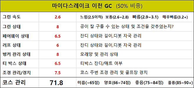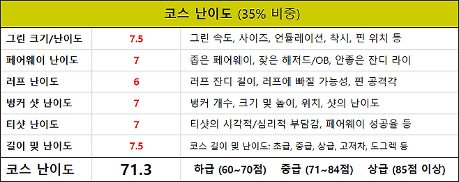 코스 길이 및 난이도 : 7.5점