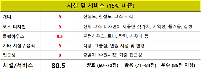 캐디의 코스 설명, 운영 및 친절도 : 8 점