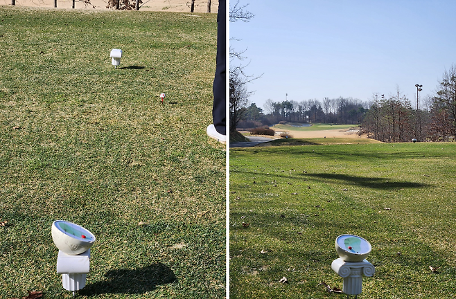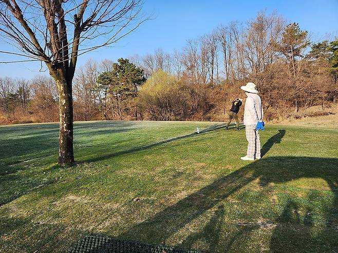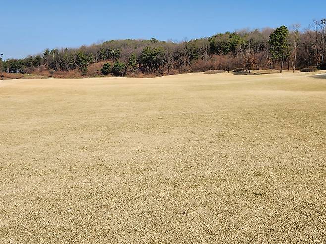 서너 홀 빼곤 모두 잔디 티 박스를 열었습니다. 아직 잔디가 건조하고 표면이 고르지 않습니다.