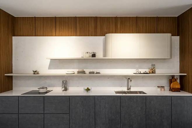 LX Z:IN 인조대리석 하이막스는 별명이 ‘국민 상판’이다. 이미 인테리어 업계에서는 “인조대리석 = 하이막스”로 일반 명사화되었을 정도로 인지도가 높다 못해 대중적이다. 물이 많은 주방 공간에 자주 쓰이는 하이막스는 내구성, 디자인, 사용 편의성, 미감까지 모두 잡은 LX Z:IN의 스테디셀러로 손색이 없다.