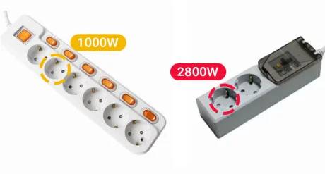 그에 반해 고용량 멀티탭은 허용 전력이 3000W 이상인 제품이 많으며, 1구별 허용전력도 2000W 정도로 일반 멀티탭 대비 훨씬 높은 편이라, 전력소모가 높은 제품도 안전하게 사용이 가능합니다.