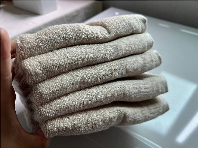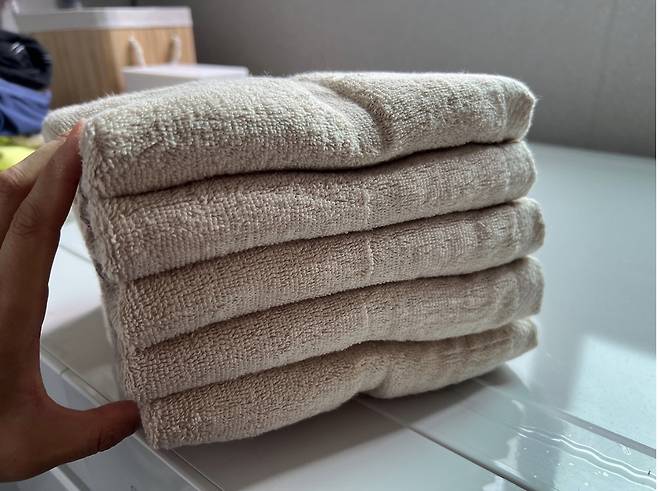 새 수건을 장만했는데 이렇게 세탁하지 않으면 먼지 그대로 다 뒤집어쓰는 꼴이에요.