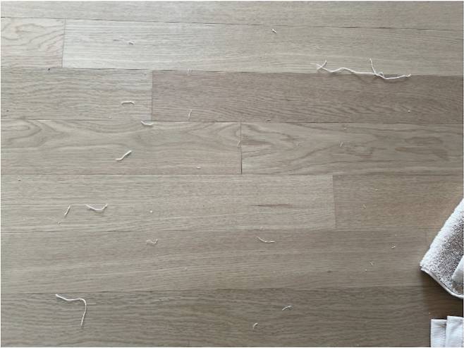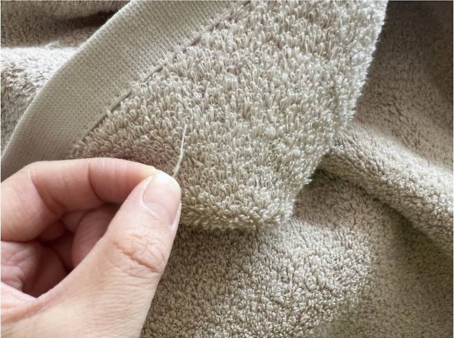 수건에 이렇게 나와 있는 실밥은 가위로 잘라주세요
