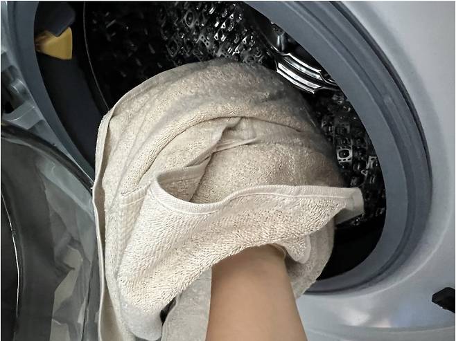 구입한 수건을 전부 세탁기에 돌리고 싶지만 수건은 최대 5장 이하로 단독세탁해 주세요