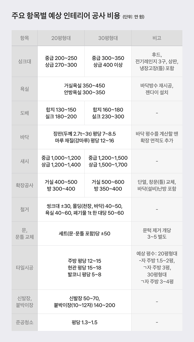 구축 아파트의 경우 기존 벽지 제거, 배관 상태, 방수 공사 등에서 예상치 못한 비용이 발생할 수 있는데, 양심적인 업체라면 이를 견적 단계에서 미리 안내한다. 계약서에 반드시 '추가 비용 발생 시 사전 협의 후 진행'이라는 조항을 넣어야 한다. 사전 고지 없는 추가 청구는 거부할 수 있다는 사실을 기억해 두자.