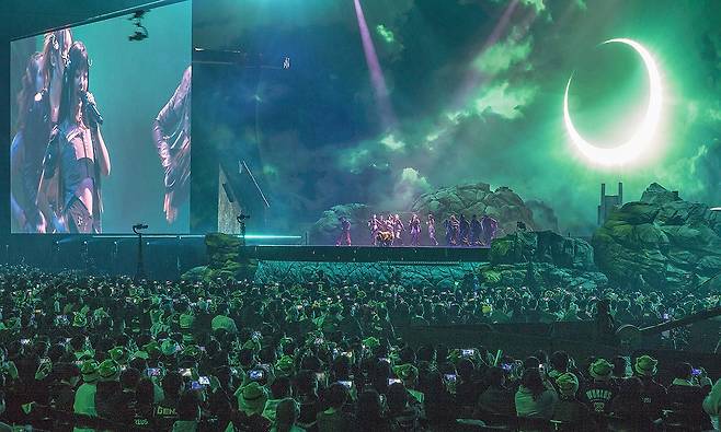 (서울=연합뉴스) 김주환 기자 = 19일 서울 구로구 고척 스카이돔에서 열린 2023 리그 오브 레전드(LoL) 월드 챔피언십(롤드컵) 결승전 개막식에서 그룹 뉴진스가 공연하고 있다. 2023.11.19
