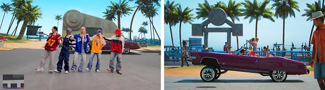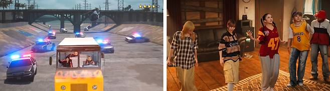 두 번째 포토에선 현금으로 가득 찬 트럭과 현금 호송원 유니폼을 입은 멤버들이 등장합니다. GTA는 '차량 절도'라는 뜻을 가진 이름처럼 미션을 수행하며 각종 범법행위를 저지르는 게임인데요. 범죄자들이 현금 호송원으로 위장하고 있는 듯한 모습으로 이번 뮤직비디오의 스토리를 조금 더 직접적으로 예고하는 사진이라고 할 수 있겠네요! 첫 번째 포토와 함께 GTA의 상징적인 요소를 오마주하며 GTA 세계관 속에 들어온 듯한 모습을 보여주는 사진이었습니다.