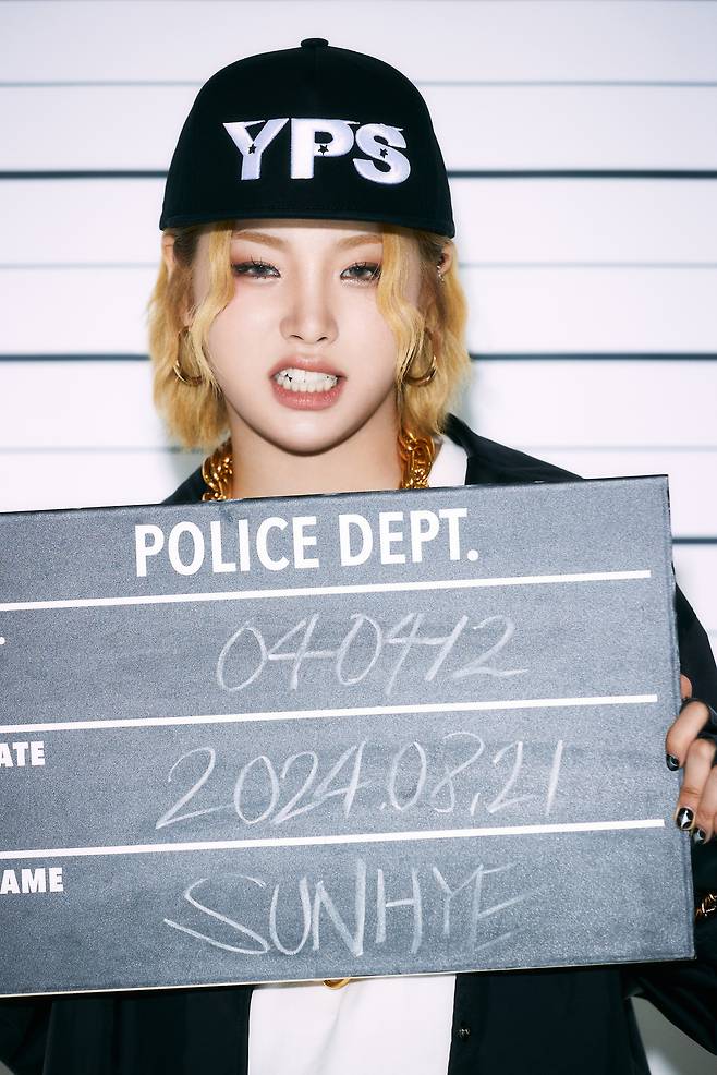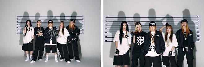 첫 번째로 공개된 포토는 머그샷 콘셉트로, 눈금판 앞에서 데뷔일과 그룹명이 적힌 팻말을 들고 있는 멤버들이 보이는데요. GTA의 캐릭터 생성 화면 배경이 머그샷이라는 것에서 따온 아이디어인 것 같아요. 콘셉트상 이들이 범죄자라는 것을 알려주기도 합니다. 힙합 콘셉트에 맞게 착용한 스냅백, 금 목걸이 등의 소품들과 함께 블랙, 화이트 컬러로 깔맞춤한 의상으로 반항적이고 시크한 매력을 선보입니다.