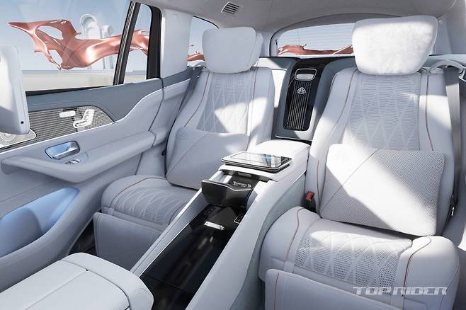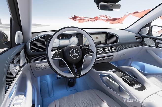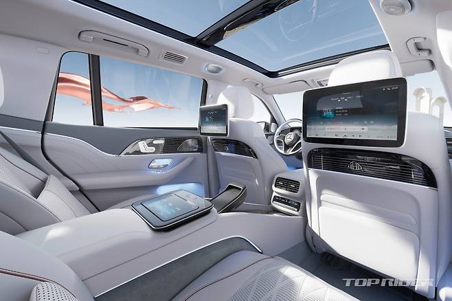 마이바흐 신형 GLS 실내에는 정전식 터치 스티어링 휠, 3개의 터치 스크린으로 구성된 MBUX 멀티 시트 엔터테인먼트 시스템, 미세 먼지 및 오염 물질 정화 시스템, 고성능 스마트폰 무선 충전 시스템이 적용됐다. 매뉴팩처 크리스탈 화이트/실버 실내 컬러 선택이 가능하다.